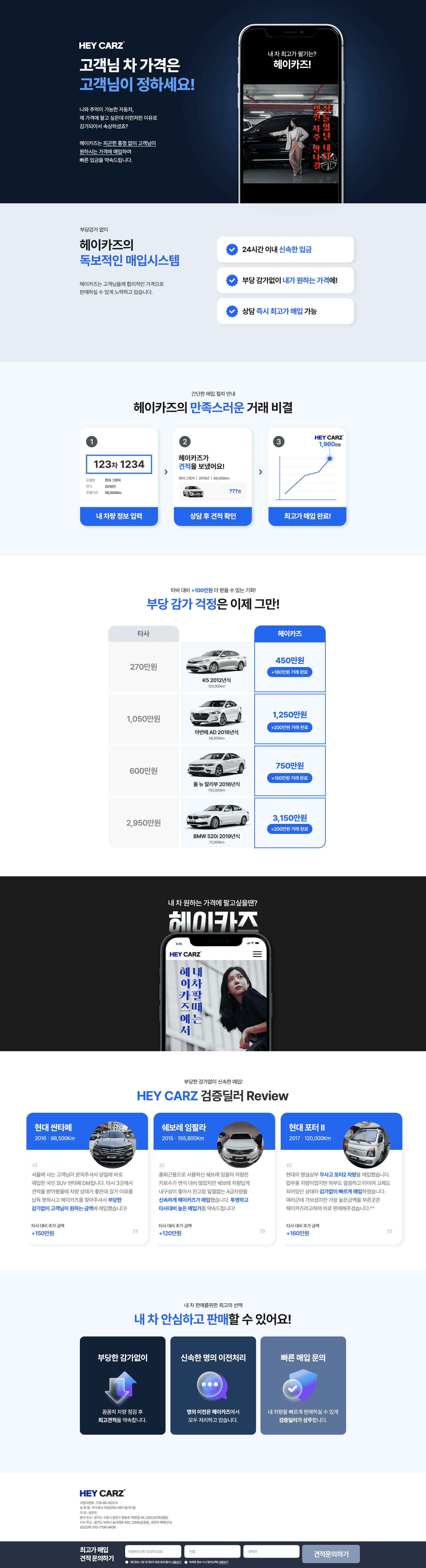 - 감가 비교 표 시각화: 타사 견적과 HEY CARZ 견적을 비교하는 테이블을 통해 설득력 강화